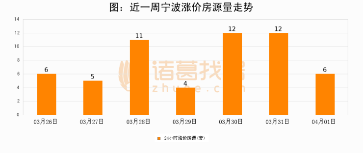 根据诸葛找房数据显示,宁波24小时涨价房源量为6套,较03月31日减少6套,环比下降50%。与此同时,涨价房源占比小幅回落,对于购房者来说是一个入市窗口期,购房者可抓住时机入市。