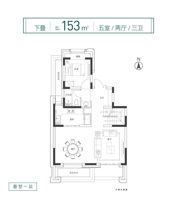 约143平4室2厅3卫上叠、约153平5室2厅3卫下叠,格局方正阔气,约7.3米大面宽双厅,尺度非凡,配合大面宽阳台设计,光线俱佳。
