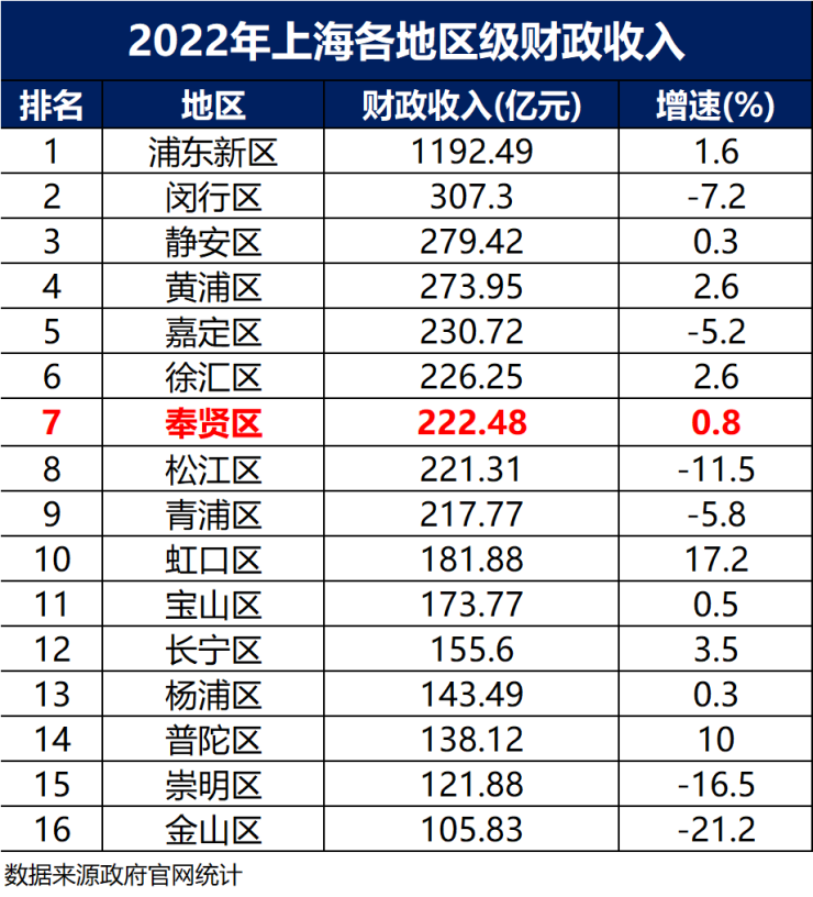回顾2022年各区的财政税收数据,嘉/青/松/奉四个新城,只有奉贤实现了区级财政收入正增长,总量排名也已升至全市第七(来源奉贤官微)!