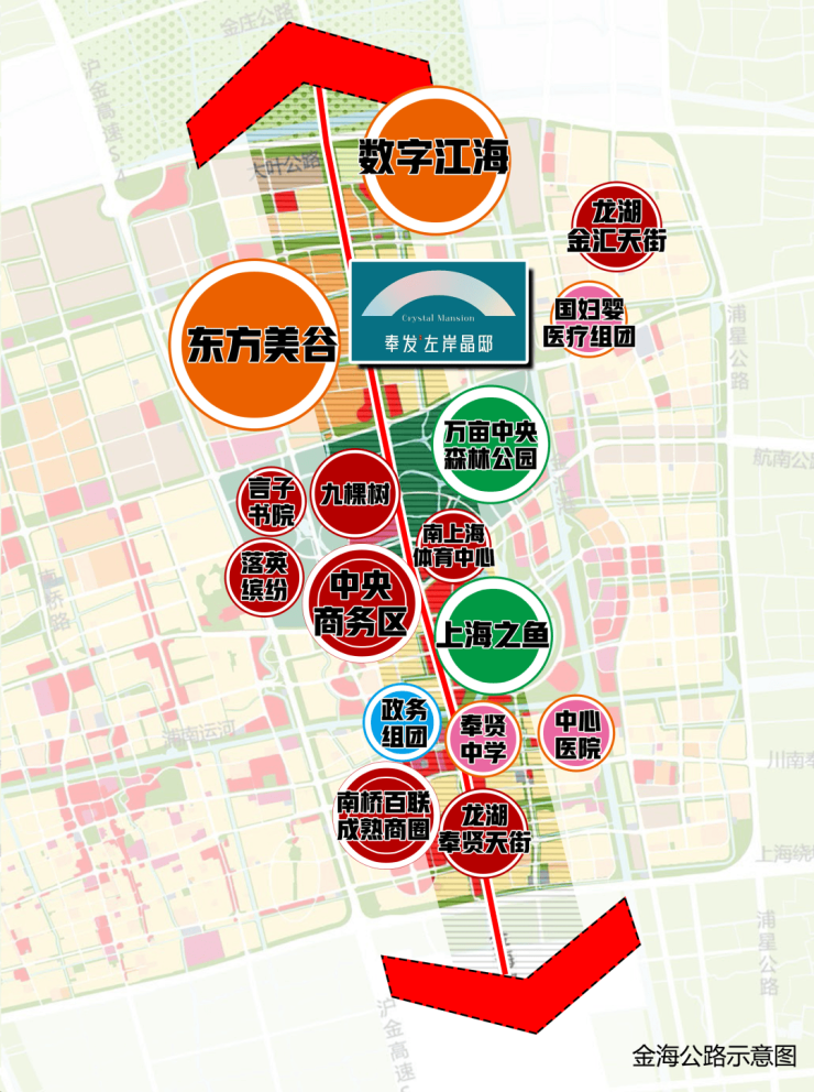 奉发左岸晶邸所在的金海公路,南北串联奉贤新城核心地标、繁华商业、生态名片、战略产业,当之无愧中央黄金发展轴线!