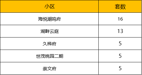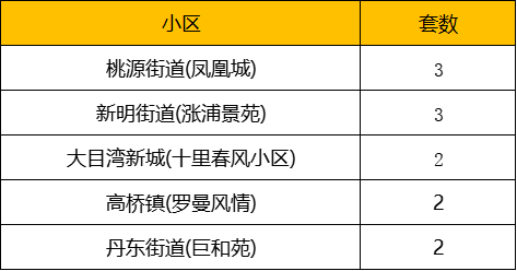 其中桃源街道(凤凰城)、新明街道(涨浦景苑)成交3套,位列榜首。
