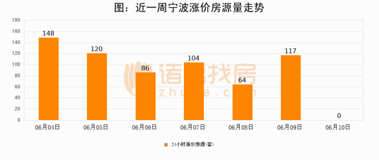 根据诸葛找房数据显示,宁波24小时涨价房源量为0套,较06月09日减少117套,环比下降100%。与此同时,涨价房源占比小幅回落,对于购房者来说是一个入市窗口期,购房者可抓住时机入市。