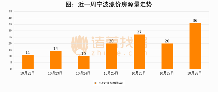 根据诸葛找房数据显示,宁波24小时涨价房源量为36套,较10月27日增加16套,环比上涨80%。与此同时,涨价房源占比小幅扩大,业主信心有所提升。