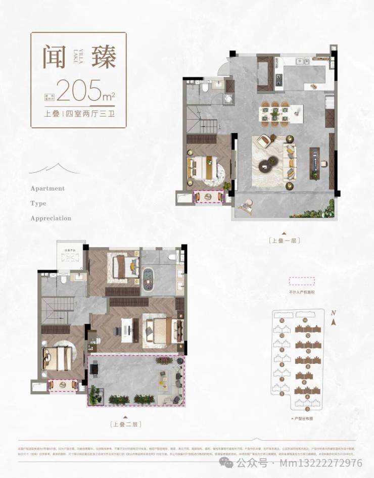 注:叠墅户型附赠露台或花园(如南向花园35㎡、露台13.5-22㎡)