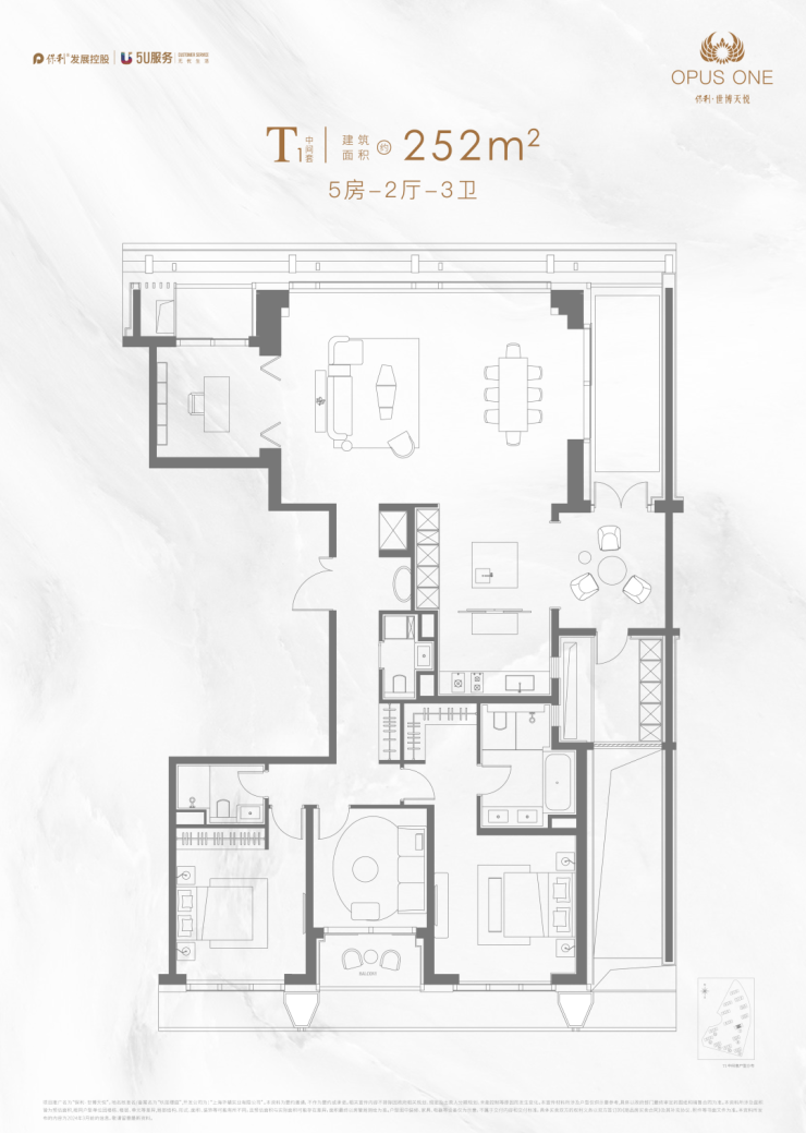 270°环幕视野,奢装大平层设计:约7.2米巨幕阳台、270°转角飘窗,主卧配备独立更衣间与双台盆卫浴