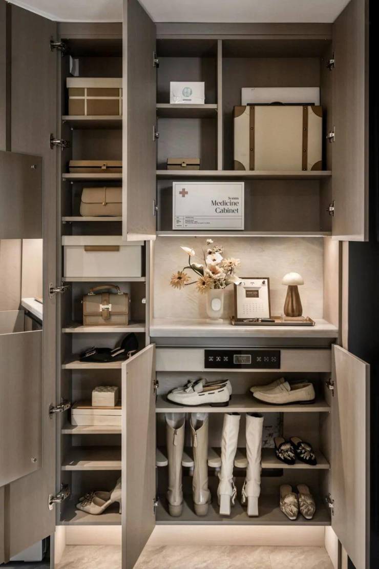 入户动线集功能和视觉美感于一体,强收纳的功能玄关和S墙设计,都将日常功能藏于动线美学之中一体考量,更加美观。
