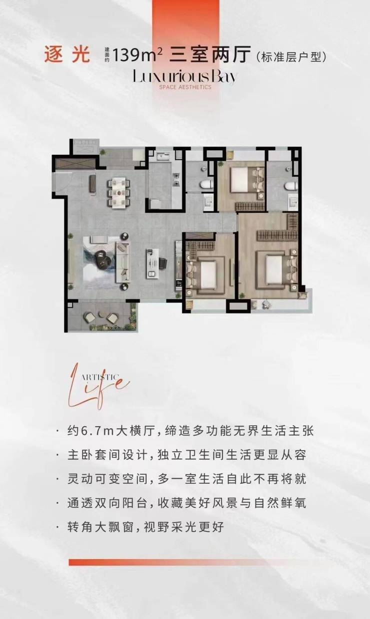 建面约139㎡3房2厅2卫
