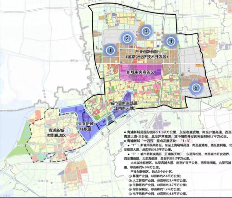 “3”包括青浦老城厢及周边的“城市更新实践区(江南新天地)”、青浦大道以西及三分荡地区的“未来新城样板区”以及工业园区产业基地内的“产业创新园区”。