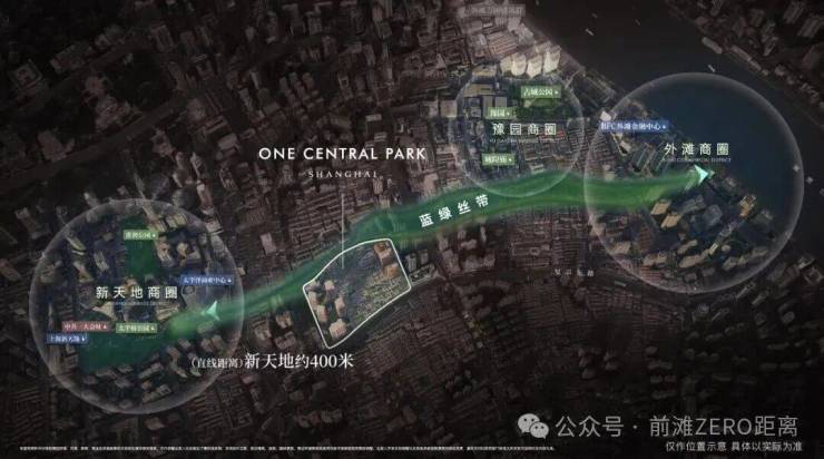 距离新天地直线距离约400米,作为蓝绿丝带规划上的关键节点,随着大新天地东进南拓战略逐步实施,通过水景、绿地和公共空间,串联新天地、豫园、外滩三大世界级商业版图。