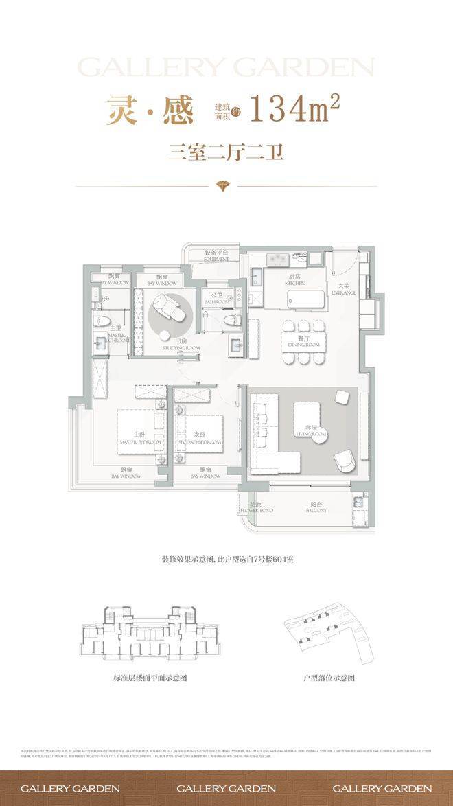 约134㎡ 三房两厅两卫:主卧套房+衣帽间,北向X空间可改造,总价约1530万起