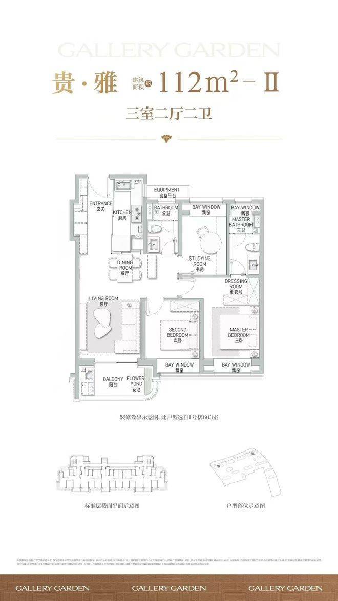 约112㎡ 三房两厅两卫:南北通透,独立家政间,总价约1250万起