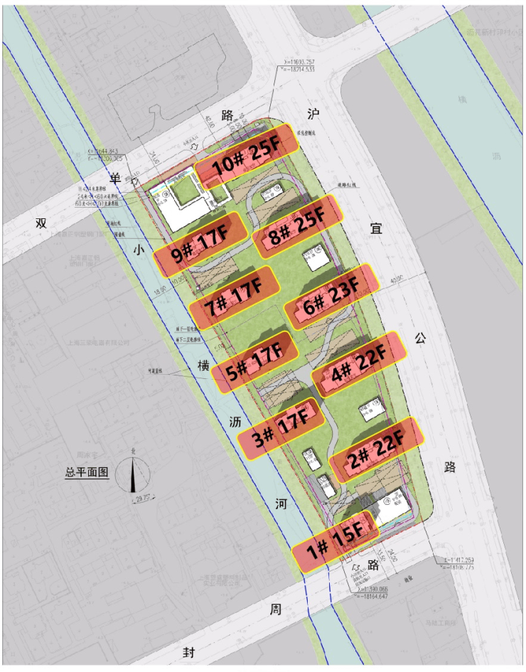 楼层总高:规划9栋高层住宅,分别为4栋17层、2栋22层、1栋23层、2栋25层
