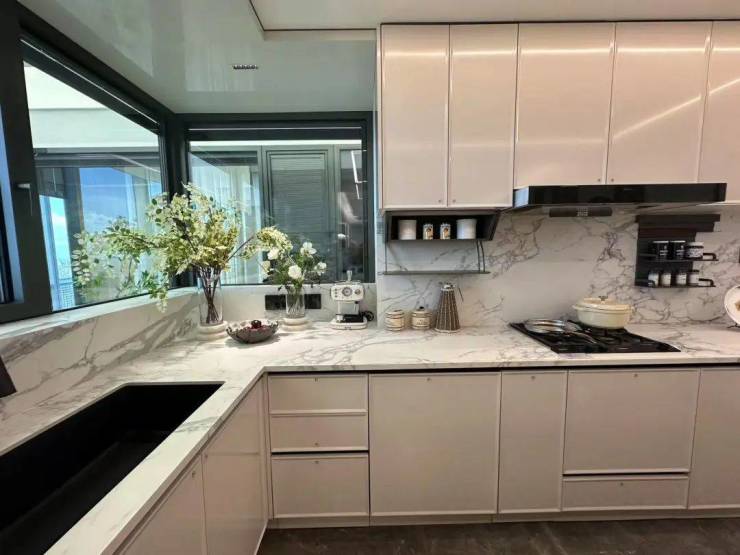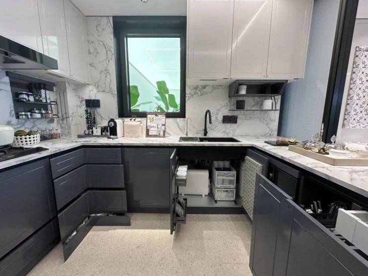 整体动静分区格局。在U型厨房基础上融入 “社交属性”,让烹饪时亦可与客厅家人互动。
