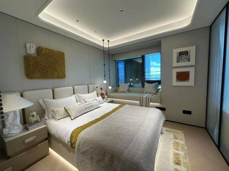 同样近乎等面宽的卧室尺度,让每个家庭成员都能拥有独立且舒适的休憩领地,三卧朝南的布局,让阳光成为所有人的平等馈赠,没有谁要为“主次”牺牲采光权。