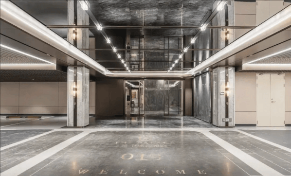 走进中环云悦府实景地库,顶部焕然一新的镜面选材映衬着地库里的光影交织,调配后的造型灯发出柔和光感,开启一场归家的艺术之旅。为贴合项目高端住区调性,车马厅背景墙融入不锈钢造型细节,大面积奢石岩板覆于墙面;地库柱子采用更具视觉艺术的弧形石材,搭配艺术壁灯;行车道吊顶颜色以高级灰白色,提升地库品质。