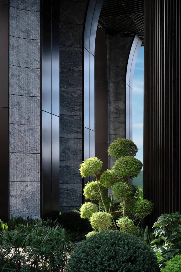 上面是陆家嘴太古源 源邸的立面,通过大量的曲线运用,进口浅色花岗岩衬底,搭配金属铝板勾边的流光色泽,使得建筑整体与咫尺黄浦江的波光粼粼遥相呼应。