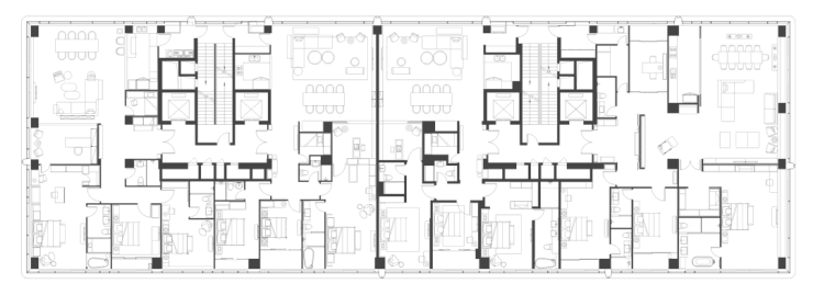 基于室内功能、观景体验,生活起居的舒适性、健康、安全等要素考虑,经过多轮材料比对和细节推敲,立面形式完全契合于平面功能,以韵律变化的动态语言构筑契合未来生活需求的城市居住蓝图。