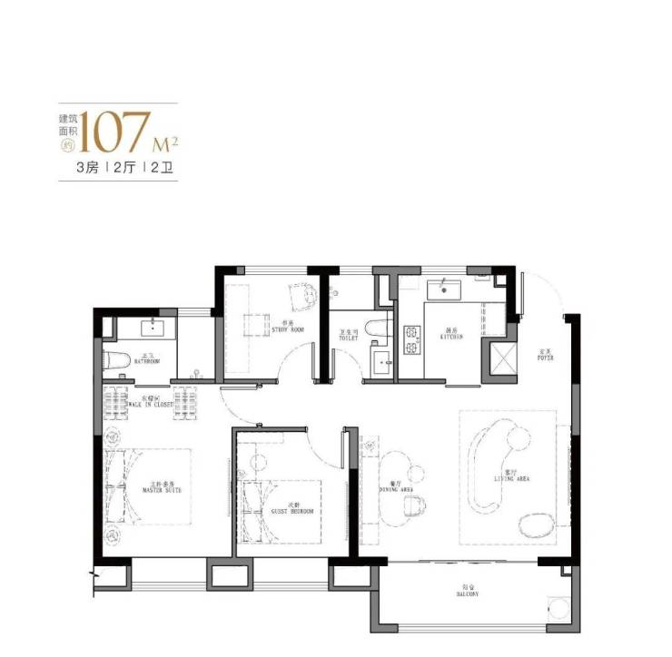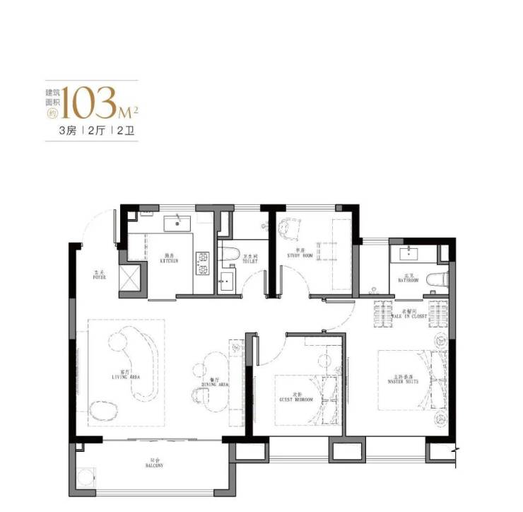 备注:得房率79-81%,103-107㎡户型实际使用面积达81-85㎡,性价比突出
