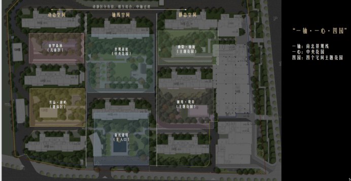 滨水低密:双面环水,北侧邻冬涟河支流,打造滨水步道,社区内规划一轴一心四园景观