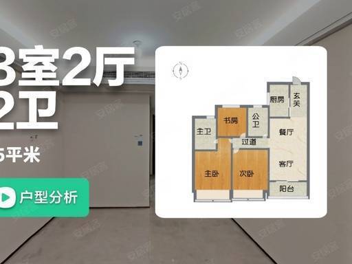 建面约 95㎡三房两厅两卫 :南向三开间,餐客一体连通阳台,双卫配置,刚需优选。