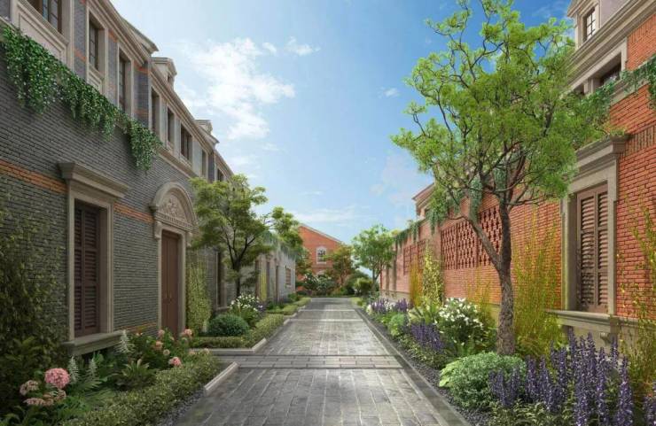 项目拥有约1.1的超低建筑容积率,社区狮子景观轴线串联海派生活的原味;提取经典洋房的场景植入社区景观打造,将丁香、紫藤,蔷薇,紫薇……等八种主题花卉,传香入园,串联巷弄8个花园,组成U型景观带,围合一座弘安大花园,叠影海派繁花巷弄里。