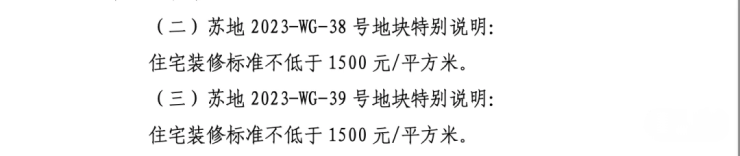 根据土拍要求,其住宅部分装修交付,两块地住宅装修标准均不低于1500元/㎡。