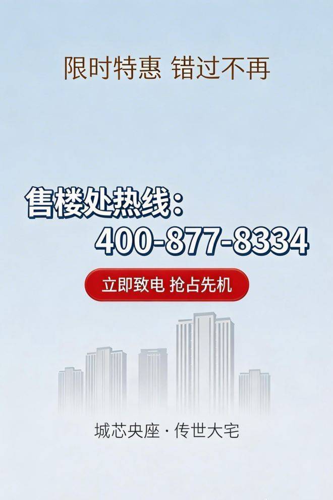 核验要点:认准唯一官方热线400-877-8334,警惕“代办费、留房费、茶水费”等各类违规承诺,一切购房相关事宜以开发商/售楼处官方口径及合同条款为准。