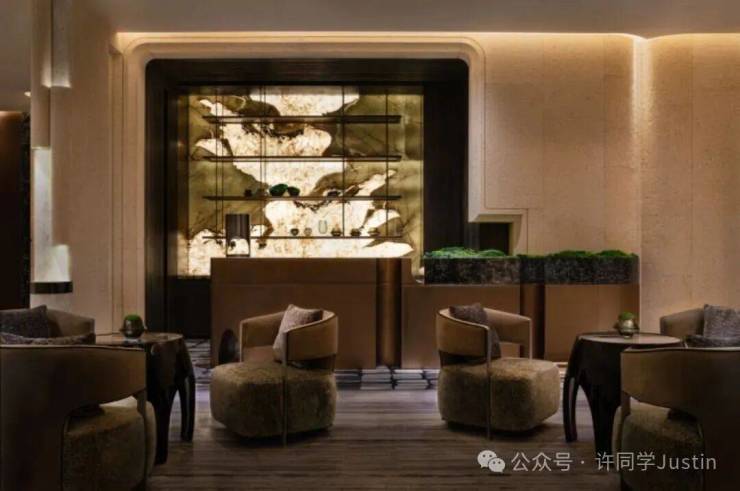 越秀·外滩樾的会所在地下三层。他们在会所中做了造型各异的奢石景墙,用各种隐约可见,来分隔和连接不同的功能空间。
