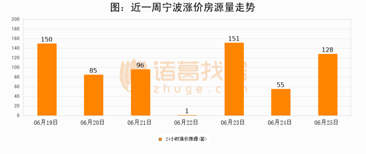 根据诸葛找房数据显示,宁波24小时涨价房源量为128套,较06月24日增加73套,环比上涨132.7%。与此同时,涨价房源占比小幅扩大,业主信心有所提升。