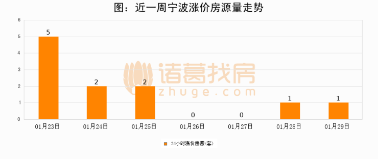 根据诸葛找房数据显示,宁波24小时涨价房源量为1套,较01月28日持平。