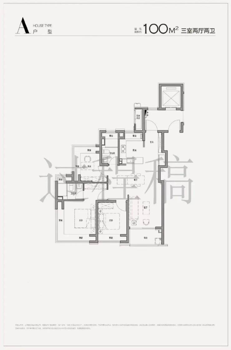 99-100㎡三室两厅两卫:总价约1137万起,均价13.55万/㎡,中间套均价13.2万/㎡,一楼仅1300万起,实得率91%,经典四叶草户型,全屋6飘窗+1阳台,赠送面积超9㎡,客餐厅LDKG一体化设计,可容纳6-8人圆桌,空间实用性拉满