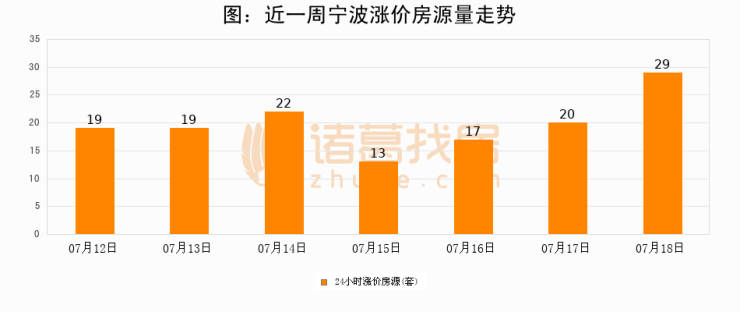 根据诸葛找房数据显示,宁波24小时涨价房源量为29套,较07月17日增加9套,环比上涨45%。与此同时,涨价房源占比小幅扩大,业主信心有所提升。