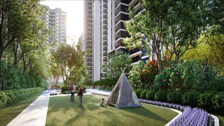 六园景观组团分布在不同楼栋之间,由高中低三层次景观树种搭配而成,让业主在不同时节归家,都有四季如春的感觉,与自然绿意相互触碰。