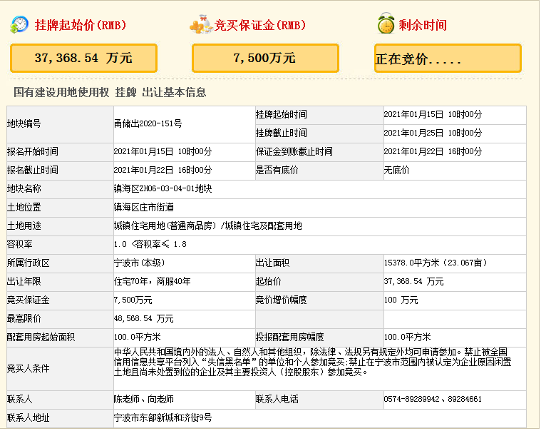 1、本地块实施“限房价、限地价、竞配建”方式出让:本地块商品住宅毛坯销售均价不高于24500元/㎡,商品住宅毛坯较高销售单价不高于28175元/㎡,车位较高销售价格不高于20万元/个。当竞买报价达到48568.54万元时,不再接受更高报价,转入竞报人才安居专用房程序,并按投报面积较高者确定竞得入选人。竞配的人才安居专用房(含人才安居专用房对应比例的停车位)按照《宁波市人才安居专用房筹集管理办法(试行)》移交政府代持机构。