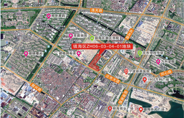 地块位于镇海区庄市街道,庄市大道北侧、庄市街河东侧。
