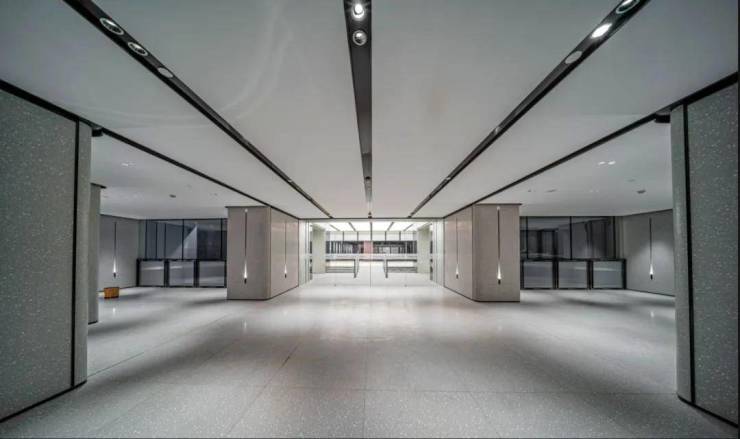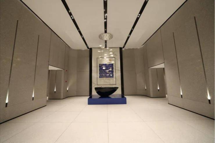 大堂墙面全部采用定制弧面铝板,每一个弧面都代表着经费。