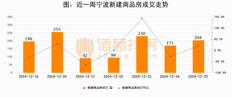 【宁波成交日报】12月25日新房成交204套;涨价房源8套