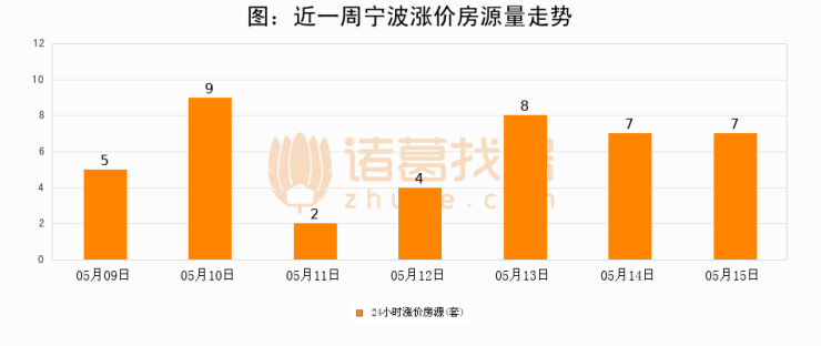 根据诸葛找房数据显示,宁波24小时涨价房源量为7套,较05月14日持平。