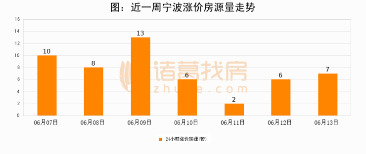 根据诸葛找房数据显示,宁波24小时涨价房源量为7套,较06月12日增加1套,环比上涨16.7%。与此同时,涨价房源占比小幅扩大,业主信心有所提升。