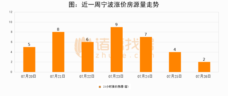 根据诸葛找房数据显示,宁波24小时涨价房源量为2套,较07月25日减少2套,环比下降50%。与此同时,涨价房源占比小幅回落,对于购房者来说是一个入市窗口期,购房者可抓住时机入市。