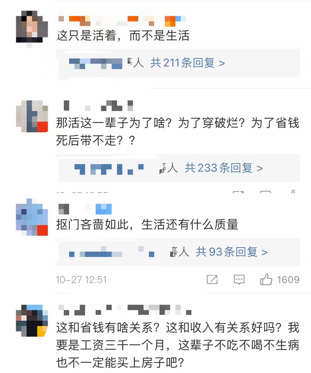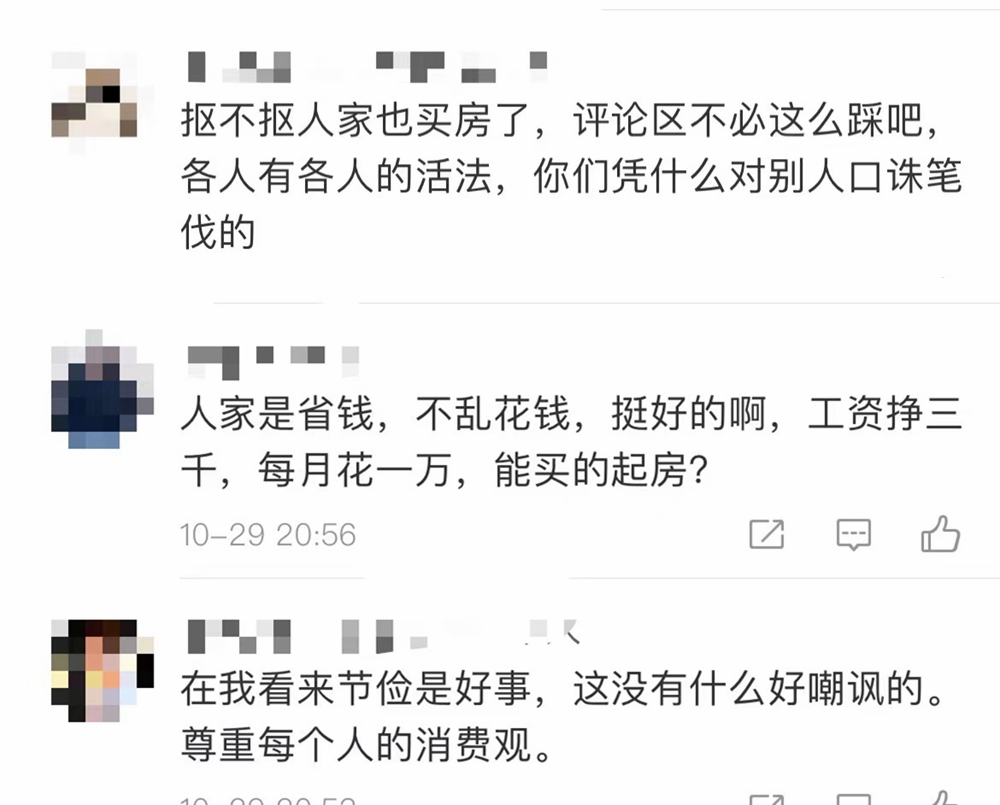 也有人对网友评论不解,节俭为什么还要被嘲?