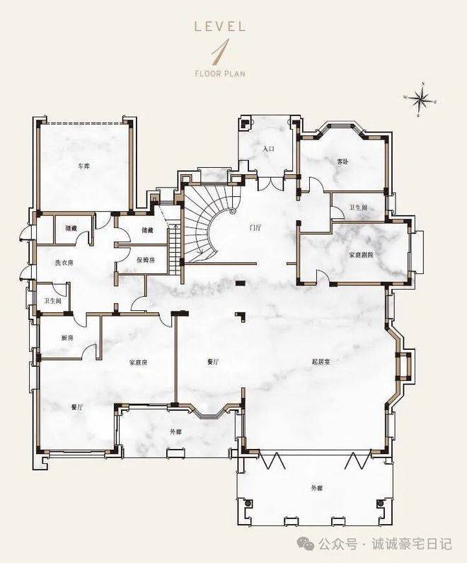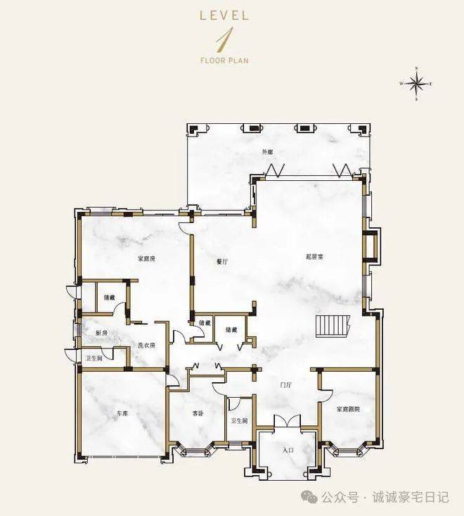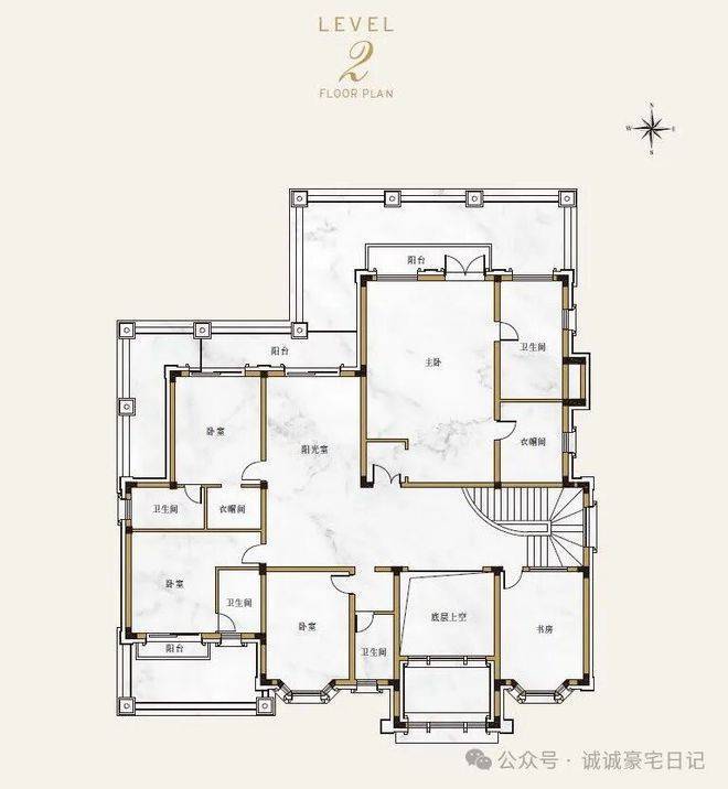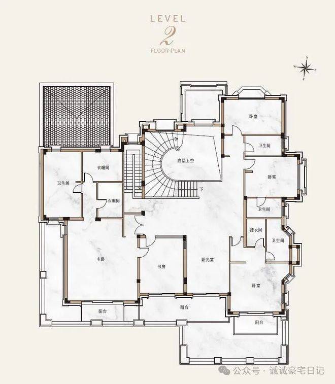 F户型:约850㎡(7房5厅6卫),南向大面宽,270°全景飘窗