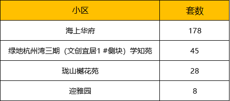 杭州湾成交66套,销售面积6324.78平方米,占比15.75%,位列第二;
