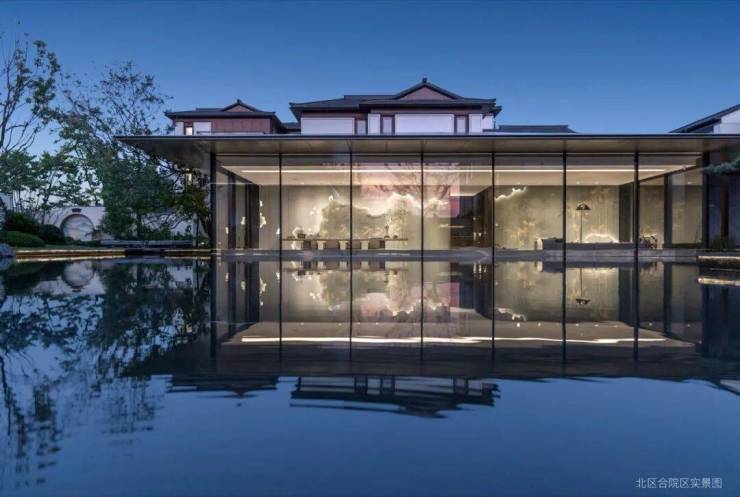 以宋代传奇名画 《西园雅集图》为设计蓝本,借鉴卡洛·斯卡帕的设计手法,通过诗意表达与精美细部,合院入园区域打造三进院落、四重景观、双中央水院与亭台水榭等当代江南名园胜景,举步之间,礼制家仪,气象万干。