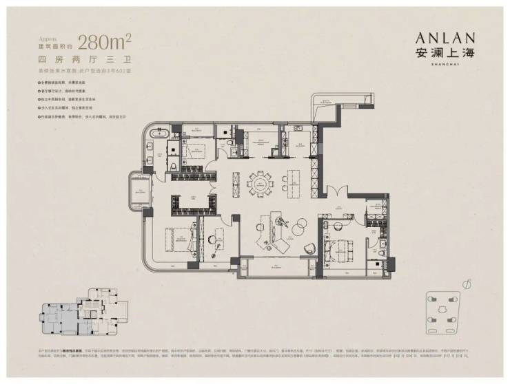 建面约280㎡,总价4300-5600万,单价15.3-20万/㎡;