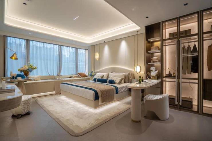 首先从小区品质来看,宸云并不是那种混合刚需与改善的综合盘,而是纯粹为改善群体定制。164户的体量,配上约1800方的下沉式会所,恒温泳池、私宴厅、健身房、书吧等功能一应俱全,真正实现了“少数人的圈层生活”。
