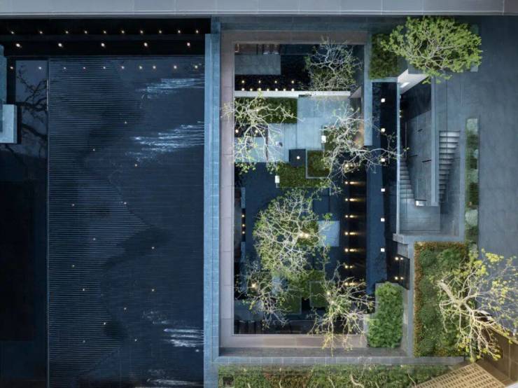 ①390㎡静心水院,静心水亭与大师建筑隔水对话,营造酒店式的宁静雅奢氛围,山水纹理的艺术水景,体现苏州在地山水画卷。