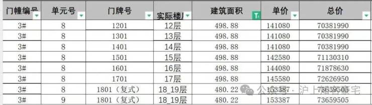 一房一价表: