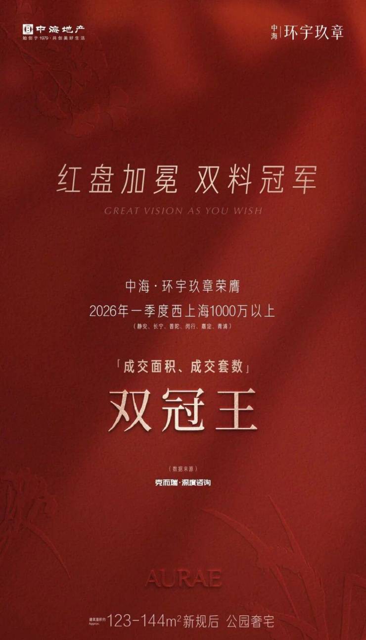 真如五轨交红盘中海环宇玖章近期成交红火,荣膺2026年一季度西上海1000万以上成交面积、成交套数双冠王!
