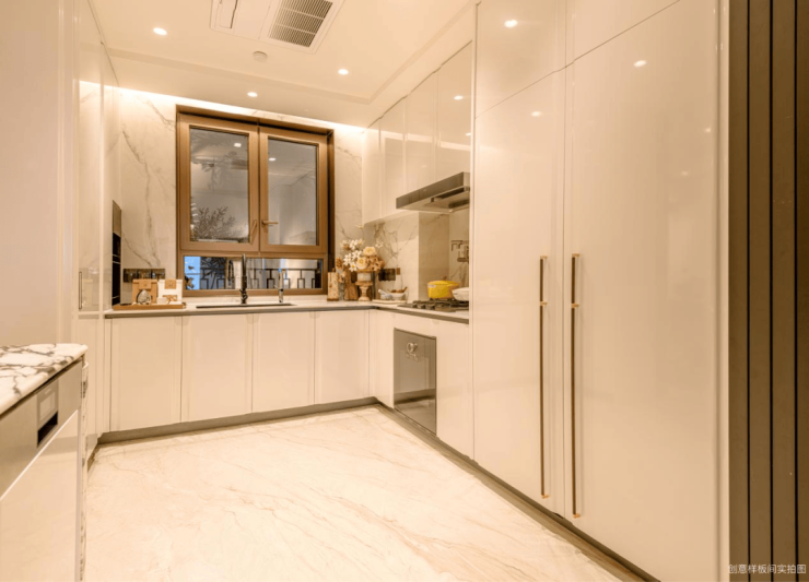 厨房里的“品质宣言”:全系标配“厨电界劳斯莱斯”嘉格纳六件套,从智能巡航吸油烟机到带烘焙功能的烤箱,诠释顶级烹饪艺术。值得称赞的是厨卫墙面都采用大块岩板铺贴,区别以往的瓷砖多个拼缝更加的美观整洁。